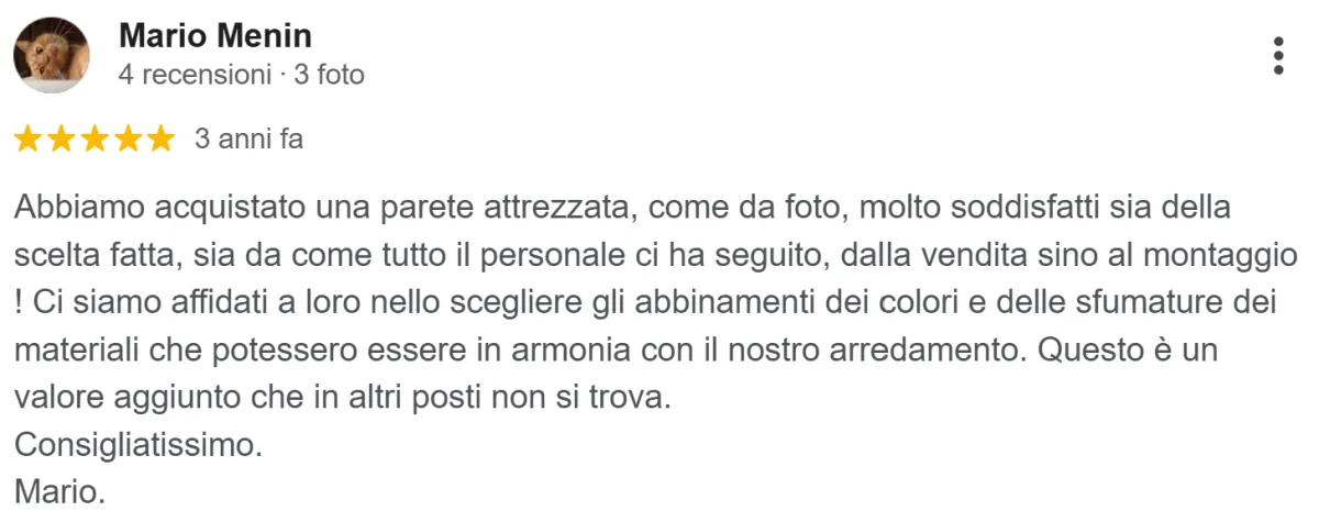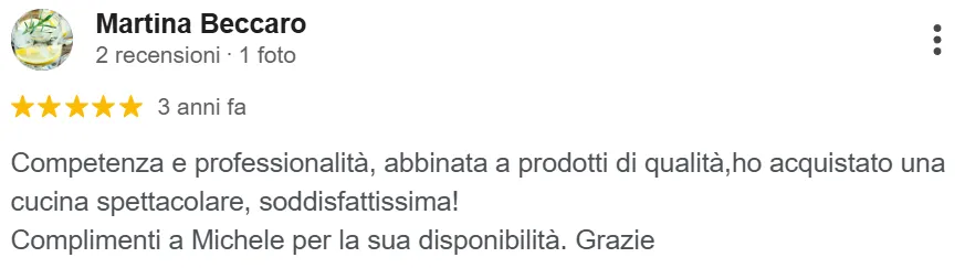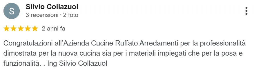 “Congratulazioni per la professionalità dimostrata per la nuova cucina, sia per i materiali impiegati che per la posa e la funzionalità”